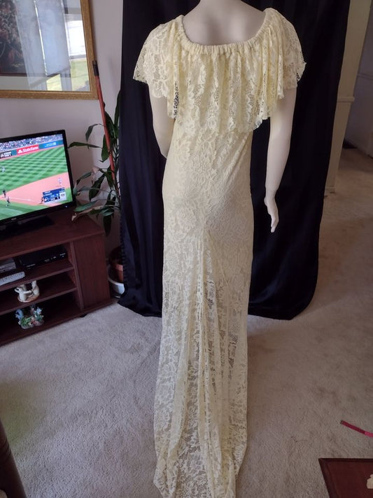 Wedding Dress Floral Lace with Train Yellow Size S