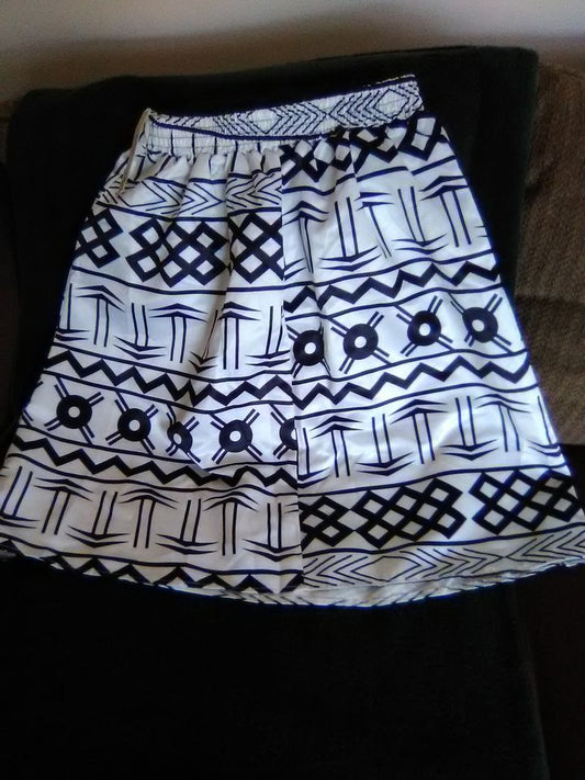 Women's Silky Pull-On Skirt by Afibi Black & White Patterned