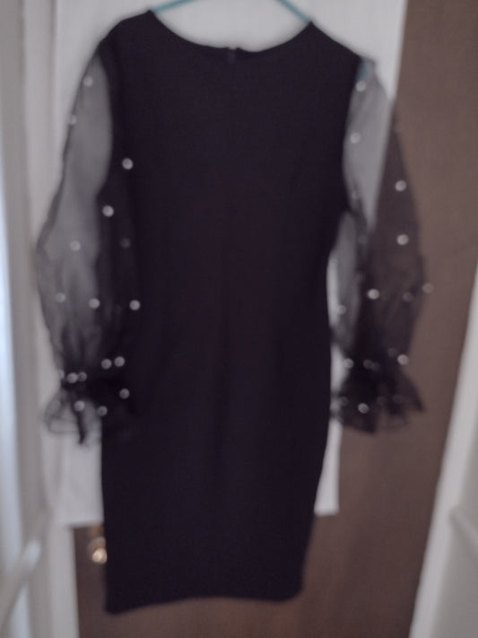 Elegant Dress with Pearl Beaded Sleeves by Shein Black