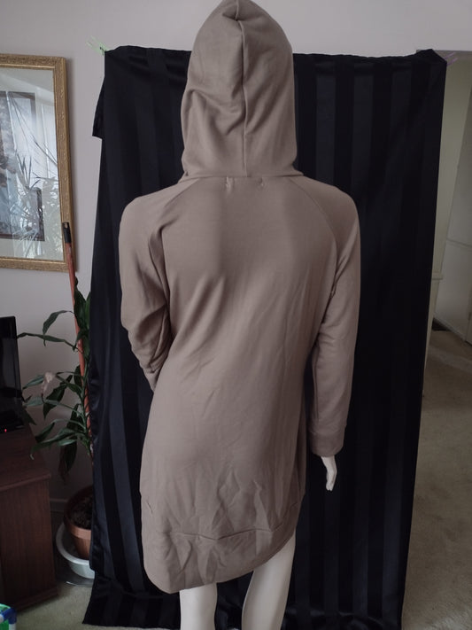 Slim Fitting Midi Hoodie Dress with Pockets Size XL Brown