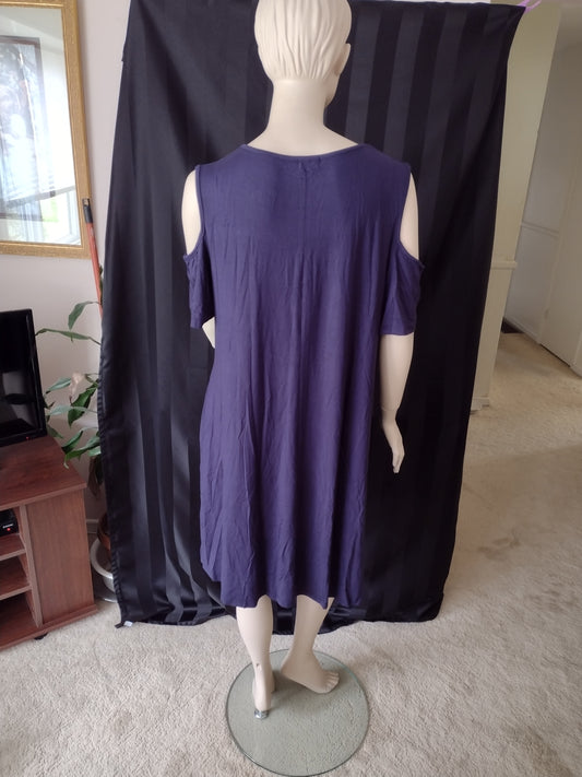 Woman's Cold Shoulder Swing Dress Size XXL Navy Blue by Kancystore