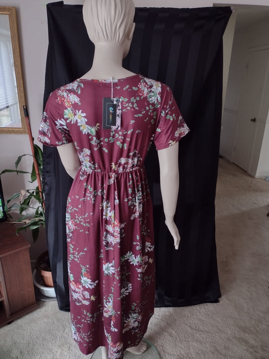 Women's Burgundy Floral Maxi Dress Size M (8)