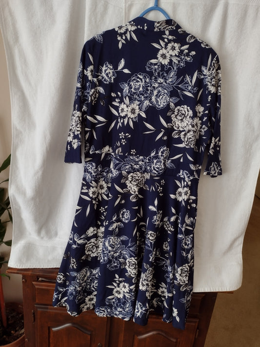 Women's Swing A-Line Dress by Bedoar Size 18W Navy and White