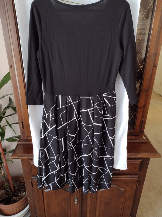 Women's Swing Dress Size L Black & White