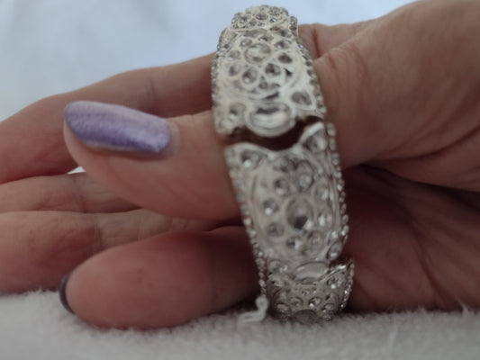 Stretch Silver Tone Bracelet with Glass Crystals