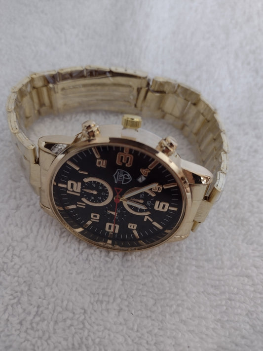 Men's Fashion Gold Tone Watch with Black and Gold Face Size OS
