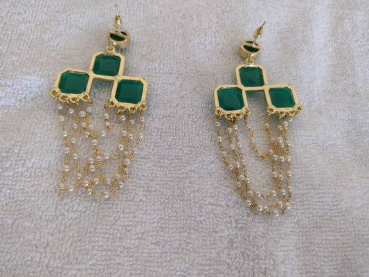 14K Gold Plated Crystal Faux Pearl Emerald Earrings