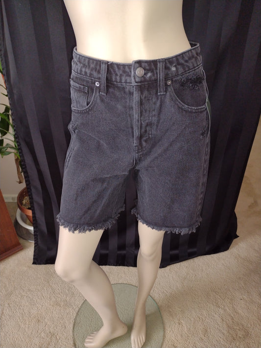 Women's High-Rise Black Denim Midi Shorts Sizes 6, 8, 16