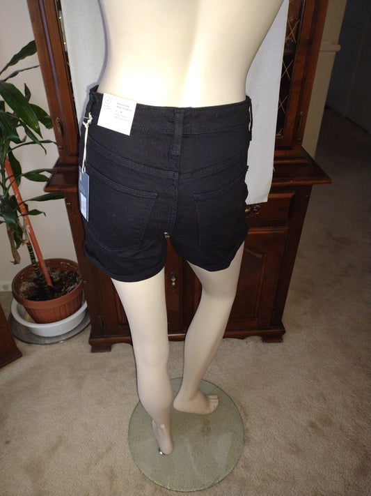 Women's High-Rise Cuffed Black Midi Jean Shorts Size 0, 2