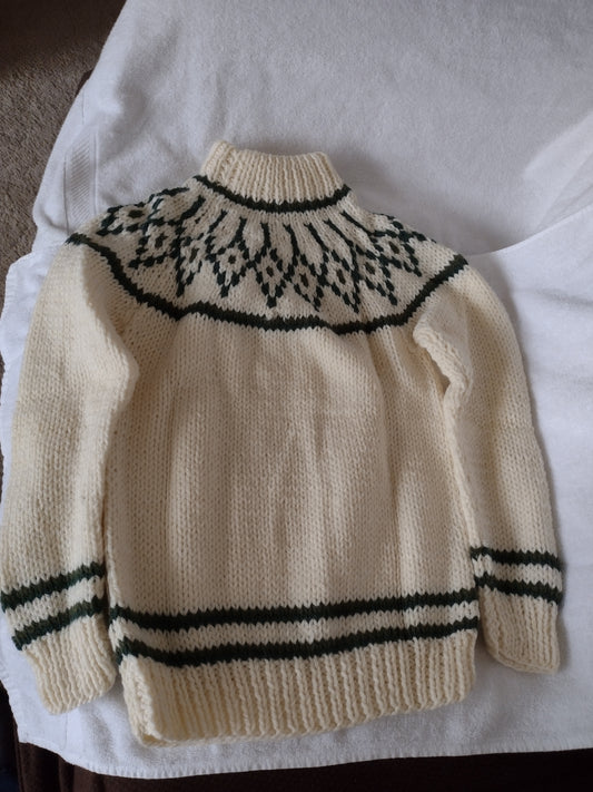 Women's High Neck Sweaters Made in Italy Off White with Green or Off White with Purple & Wine Size M