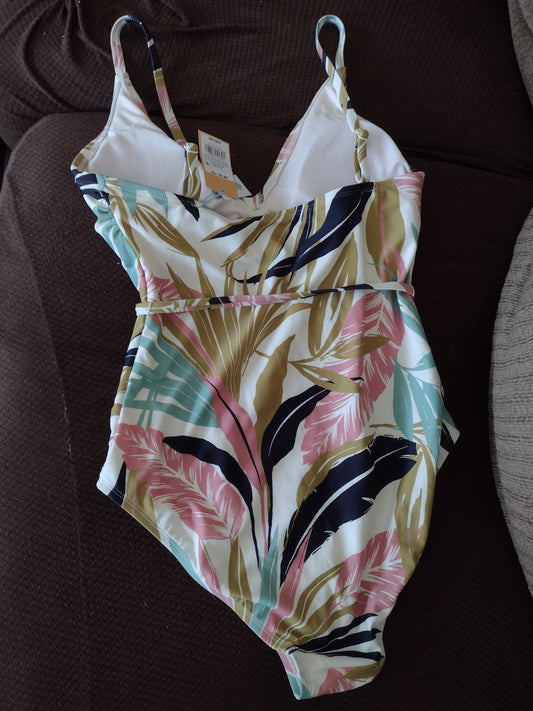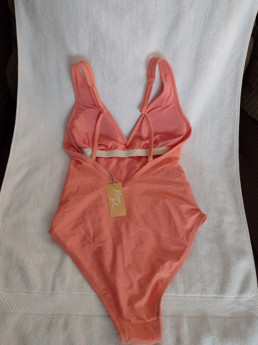 Women's One-Piece V Neck Swimsuit with Belt Size M (8-10)