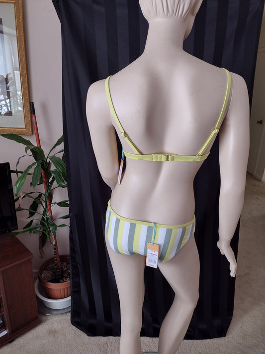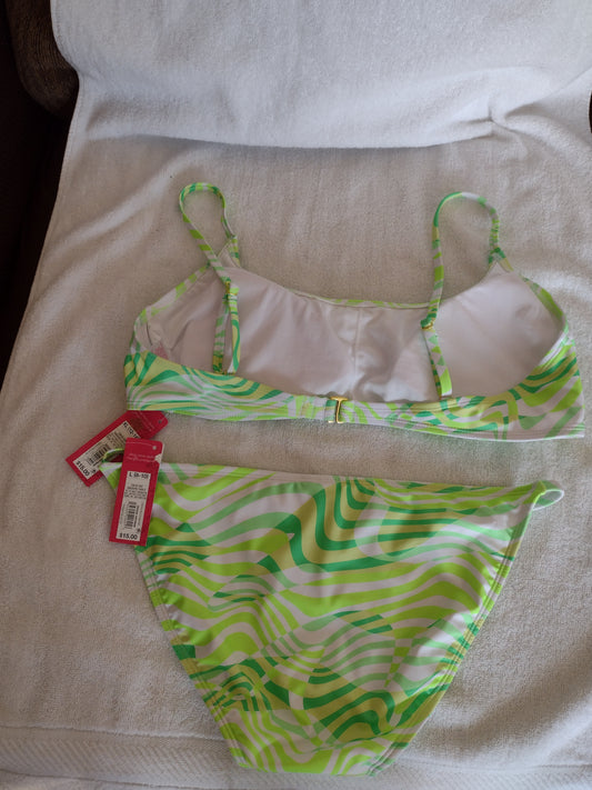 2-Tone Green Patterned Juniors' Bikini Top Size XL (12-14) & Hipster Bikini Bottoms Size L (8-10)