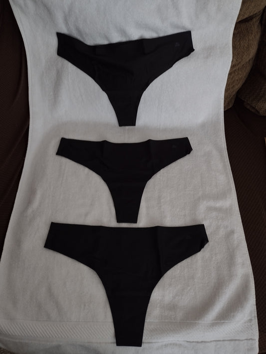 3Pk. Invisible Thong Panties Black Size XL