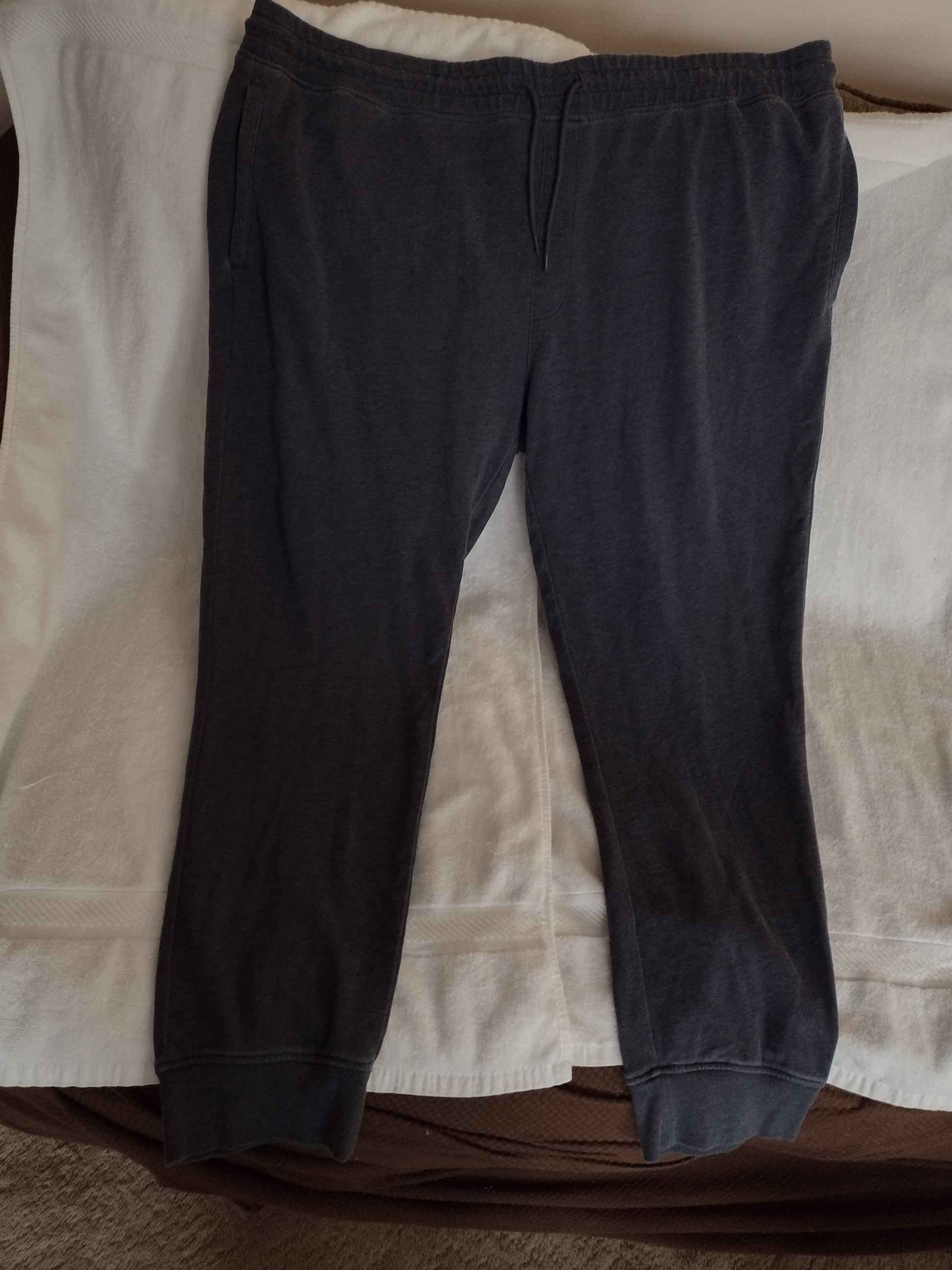 These men's jogger pants by Original Use are new, in orange and blue, both Size XXL; the waist measures 47" (without stretching), and the inseam is 29", mid-rise, fully elasticized waistband with ties, 2 side pockets and 1 back pocket on the right side, elasticized at ankles, and 65% Polyester, 35% Cotton. Thanks for looking.