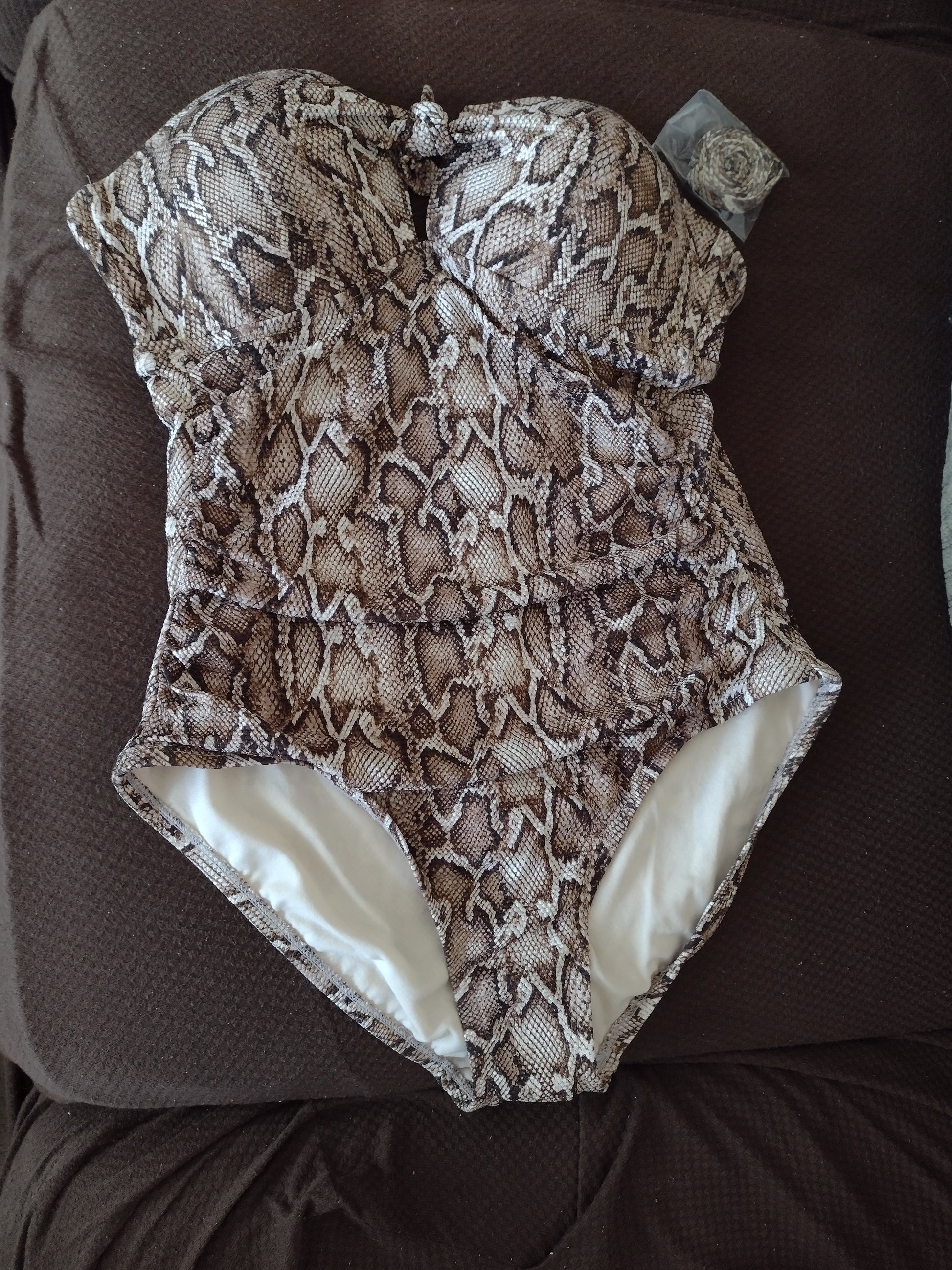 Women's Kona Sol One-Piece Swimsuit Beige & Brown Snakeskin Pattern Size L (12-14)